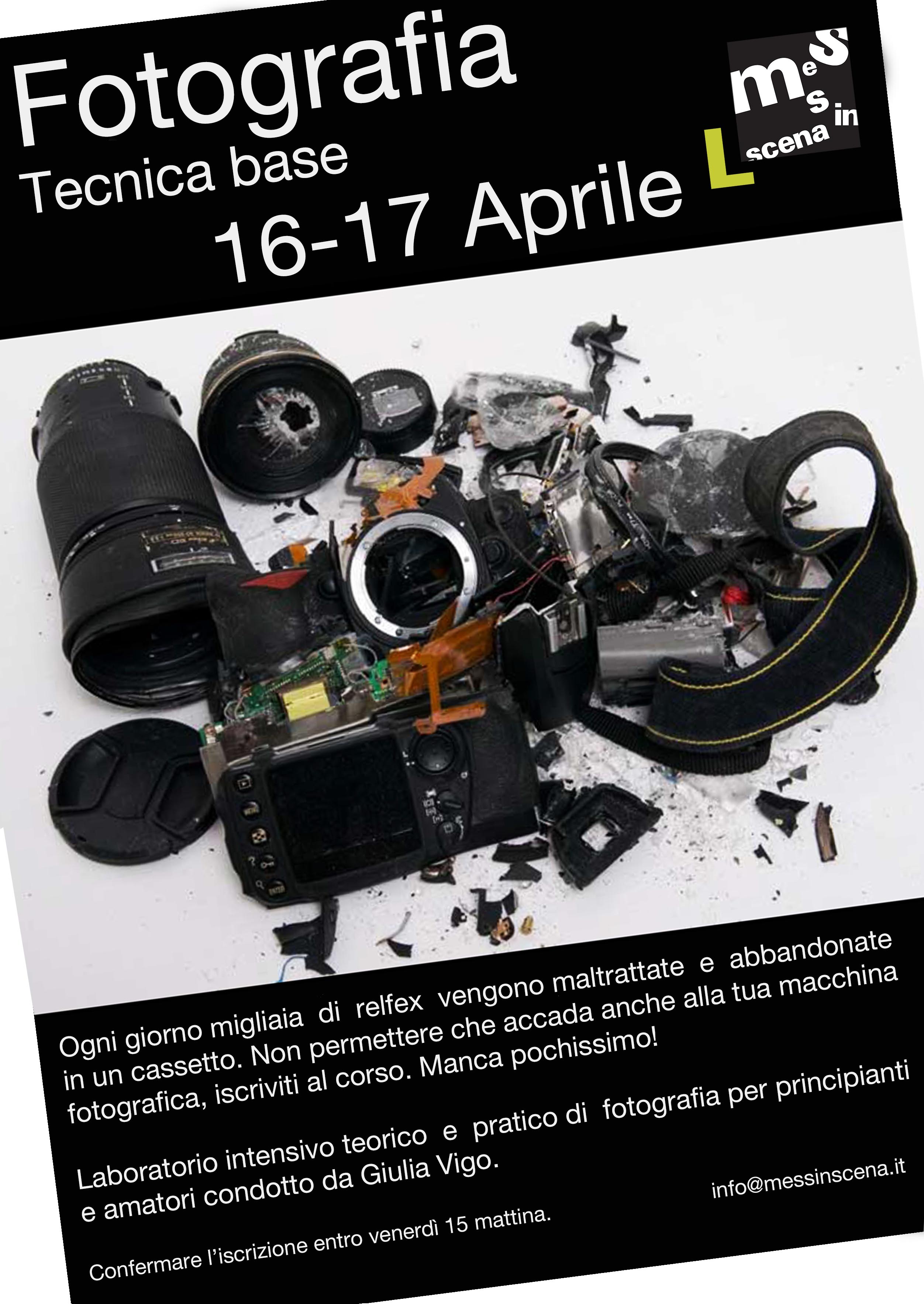 SILENZIO FUORI SCENA!Workshop Fotografia di scena. A cura di Donatella PolliniLa magia di uno spettacolo teatrale, le emozioni di un concerto, l’incanto della danza…sono varie le forme di spettacolo che toccano la sensibilità di chi vi partecipa come spettatore.A chi fotografa tocca restituire in poche inquadrature il senso di un’opera, conoscendone e rispettandone i contenuti, riconoscere le emozioni e tradurle in memoria, cercando al contempo di rendere la sua presenza compatibile con quanto accade.Il laboratorio si rivolge ad appassionati di fotografia che vogliano sperimentare o approfondire le tecniche di ripresa specifiche e le diverse problematiche relative alla realizzazione di fotografie che raccontino uno spettacolo, nel caso specifico uno spettacolo teatrale.Quattro incontri durante i quali si analizzerà il lavoro fotografico di diversi autori e verranno presi in considerazione gli aspetti riguardanti la preparazione delle riprese.Si effettueranno inoltre sessioni di ripresa durante uno spettacolo e si concluderà con l’analisi del lavoro svolto e la selezione di alcune fotografie per la realizzazione di una mostra che si terrà presso la sede dell’Associazione Messinscena.Primo incontro:26 maggio 2016ore 20.30 presso la Tana di Messinscenascarica la scheda dettagliata: clicca QUIinfo: emanuele / 331 2611776referenze: www.donatellapollini.net