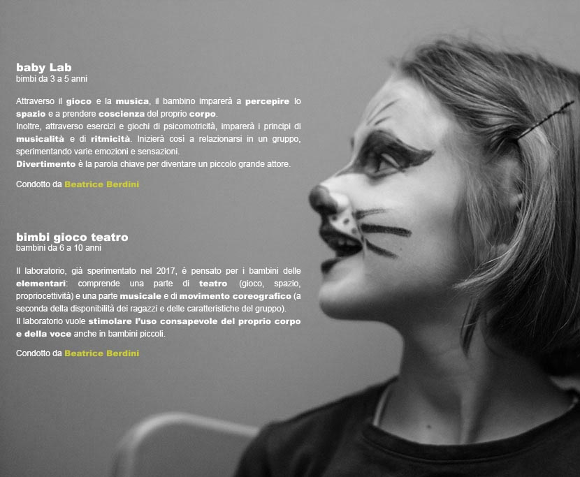 per bambini da 3 a 5 anni (baby Lab) e da 6 a 10 anni (teatro gioco)