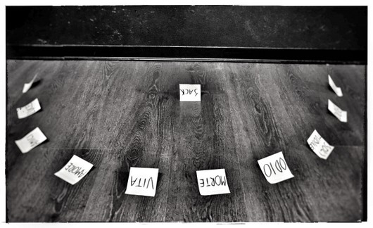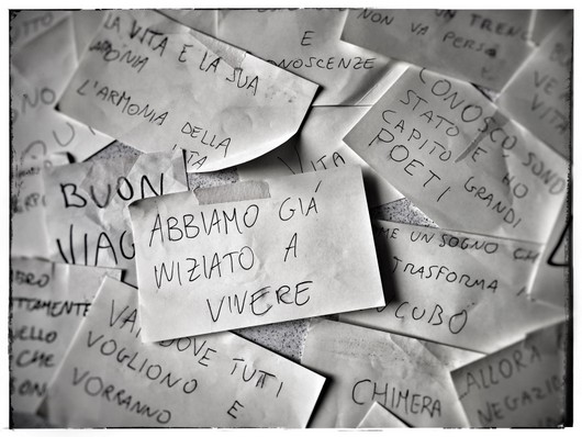 Così, ci siamo confrontati, abbiamo lavorato e sudato insieme, abbiamo letto brani di libri, ascoltato canzoni e letto i testi, abbiamo parlato… ne sono nati pensieri sparsi, scritti e tantissimi post-it.